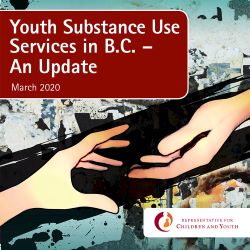 This report provides an update to RCY’s 2016 inventory of youth substance use services in British Columbia. This new baseline of substance use services for youth will allow the Representative to measure and publicly report on progress made by the Ministry of Mental Health and Addictions, the Ministry of Health and health authorities to improve access to and information about youth substance use services in B.C.